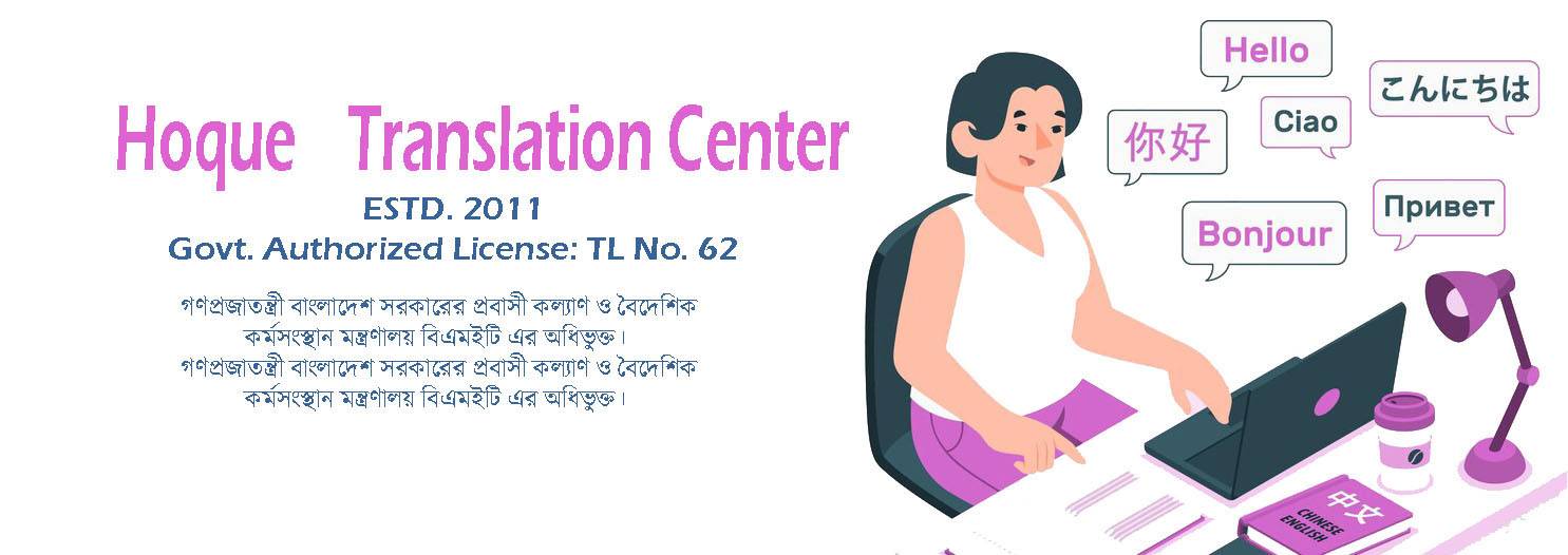 Hoque Translation Center All known As " Hoqoue Translation Center established 2011 is a first Govt. Approved translation firm. in Bangladesh. Our reputation for excellence is second to none.